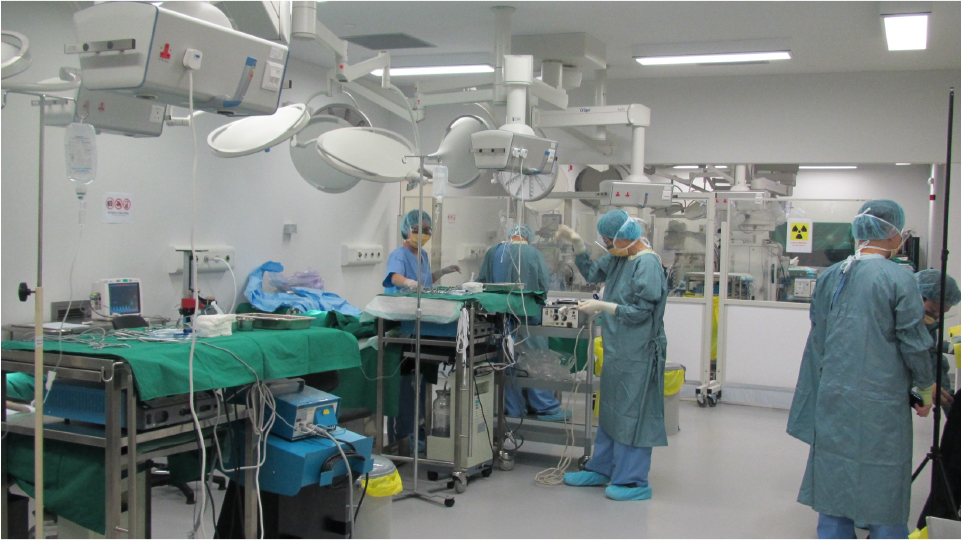 | 2015年1月9日にSingapore General Hospital(SGH)の動物センターにてシンガポールの子宮移植研究チームとカニクイザルの子宮同種移植手術を行いました。 シンガポールでは日本同様に代理懐胎は認めておらず、最近、子宮性不妊女性に対する子宮移植の研究を行うチームが結成されました。形成外科医および婦人科医から構成される彼等のチームも我々同様に基礎実験としてカニクイザルを使用しており、これまでに自家移植実験を1件行っております。今回は、同種移植手術を予定し、カニクイザルでの同種移植手術の経験がある我々のチームに手術の協力依頼がありました。残念ながら、三原先生は臨床業務の都合がつかず参加できず、木須のみが参加させて頂きました。 SGHの動物センターは大変近代的な大きな建物で、手術室は人の手術室と同等の環境で、部屋も非常に大きく、同じ部屋でドナー、レシピエントの手術を同時並行することができました。獣医はドナー、レシピエントに1名ずつ担当してくれました。木須がSGHの形成外科医とドナー手術を担当し、形成外科医が血管吻合を行い、婦人科医と木須で残りのレシピエント手術(腟吻合や子宮固定)を担当しました。SGHの形成外科医のmicrosurgeyの技術は大変素晴らしく、顕微鏡下での微小血管吻合に苦労することなく、スムーズに吻合を行っておりました。 この日は医師、獣医、センター専門職含め計12名がこの実験に参加し、木須にとっても大変有意義な海外での移植実験となりました。今後、シンガポールでも子宮移植研究が発展していくことを願っております。 (文責:木須伊織) |